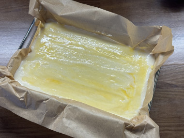 Форму для запекания смажьте сливочным маслом. Выложите манную кашу и разровняйте. В зависимости от размера формы пудинг получится толще или тоньше. С помощью кисточки смажьте поверхность пудинга оставшимся желтком. Выпекайте в разогретой до 180°С духовке около 30 минут до золотистой корочки. Время и температура указаны приблизительно, точное время выпекания будет зависеть от толщины массы, выбранной формы и вашей техники.