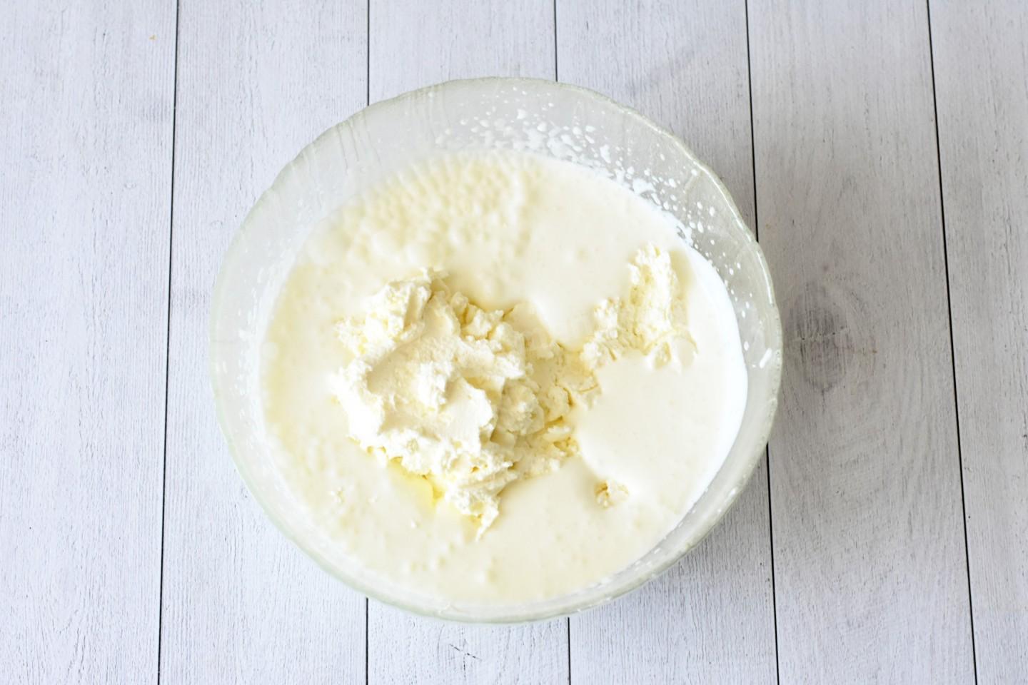 Добавьте маскарпоне и взбейте все до однородности. Долго не взбивайте, чтобы сыр и сливки не расслоились. Маскарпоне можете заменить на творожный сливочный крем без добавок.