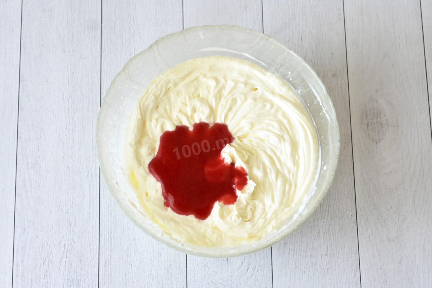 Продолжая взбивать крем на медленных оборотах, добавьте по 1 ст. л. клубничное пюре. Важно следить, чтобы пюре не разжижило крем. Должен получиться густой нетекучий крем. Количество пюре регулируйте в зависимости от густоты получившейся массы.