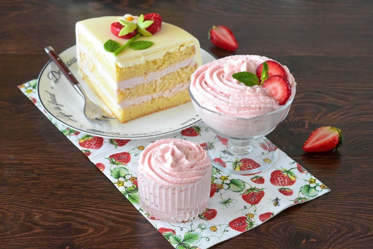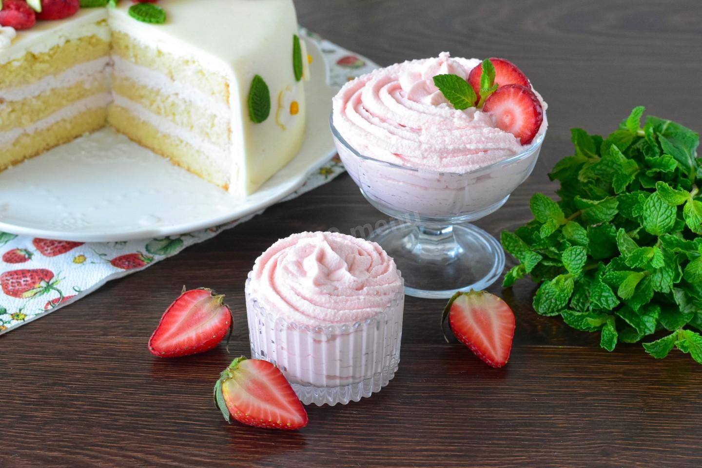 Клубничный крем можно использовать для тортов, капкейков, пирожных, в том числе и корзиночек. Я прослаивала этим кремом бисквитный торт. Приятного аппетита!