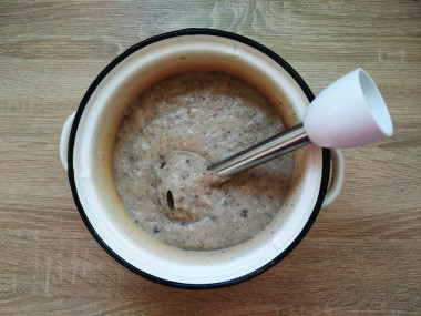 Готовый суп пюрируйте с помощью погружного блендера и можете подавать, добавив по желанию обжаренные грибы, свежую зелень или сухарики из белого хлеба.
