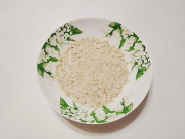 Половину овсяных хлопьев размолите в кофемолке в муку. Пересыпьте муку в подходящих размеров миску.