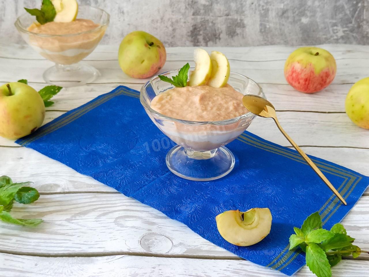 Фруктовый десерт из яблок со сметаной и мятой — это источник натуральных витаминов и клетчатки из фруктов, а также кальция и полезных молочных жиров из сметаны. Это гораздо более полезная альтернатива магазинным сладостям. Блюдо дарит энергию, улучшает пищеварение и поднимает настроение, оставаясь при этом легким и освежающим.