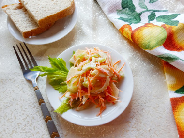 Салат с сельдереем и яблоком очень вкусный полезный и диетический салатик , правда у меня не было морковки, но все равно вкусно. А еще я добавила немного итальянских трав и меда. Салат получился сладкий и в меру пряный. Спасибо за идею.