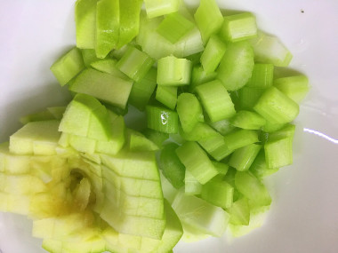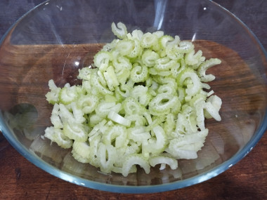 Нарежьте стебли сельдерея поперек на небольшие кусочки.