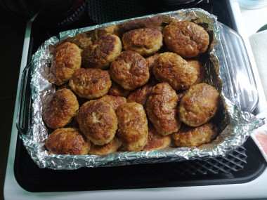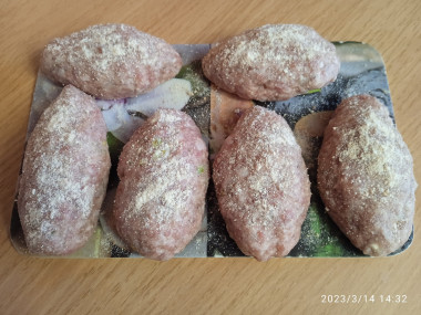 Прекрасные котлетки получились,увеличила количество фарша и батон замочила в соусных сливках,обваливала в самодельных сухарях панировочных,после обжарки запекла в духовке под фольгой с добавлением бульона,очень нежные получаются,сочные,теперь это любимый рецепт.