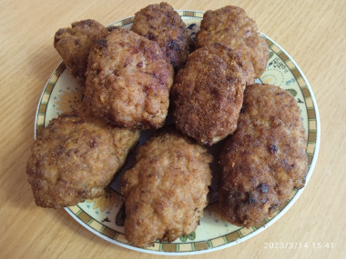 Руками сформируйте небольшие котлеты и обваляйте их в панировочных сухарях.