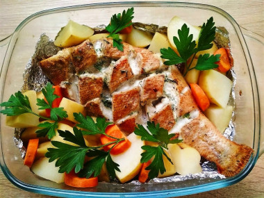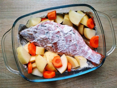 7. Поставить форму для запекания в разогретую духовку и запекать рыбу, пока она не покроется красивой румяной корочкой около 20-25 минут.