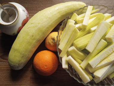 Очень заинтриговал рецепт сока из кабачков на зиму. Решила поэкспериментировать и приготовить сок по этому рецепту. Готовила, четко следуя описанию рецепта. Кабачки выбрала молодые с тонкой кожурой и перегнала их через соковыжималку. Естественно, кабачковый сок я попробовала. По вкусу он не особо вкусный, просто как вода с ароматом кабачка. Положила указанное количество сахара, закипятила. Затем добавила цедру лимона и апельсина, а также сок цитрусовых. Получился на вкус сладковатый сок с ароматом цитрусовых.