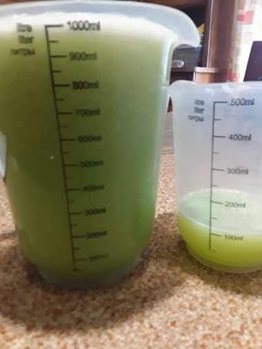 Закатала 2 пол литровые баночки на зиму и остался стаканчик на пробу. Да, сок из кабачка конечно на любителя. Моему ребенку, например, сок не понравился) а маме вкус кабачкового сока пришелся по душе. Кстати, этот сок ещё очень полезный и витаминный. Всем кому интересно обязательно попробуйте. Автору спасибо!