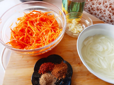 . В зимние морозные дни острые, пикантные салатики- то, что надо! Устричного соуса у меня не было, в азиатские салаты я добавляю так называемую " китайскую соль". Пока варились сердечки- натерла морковь, залила ее подсоленной водой, замариновала лук, отдельно измельчила чеснок. Пока сваренные сердечки остывали- отжала морковь, отжала маринованный лук, перемешала их вместе. Сверху выложила натёртый чеснок , на него насыпала все нужные специи, пока ничего больше не перемешивая. Раскалила растительное масло, обжарила в нем буквально несколько секунд часть сырого лука, и это раскалённое масло с луком вылила непосредственно на горку специй с чесноком. Теперь всё вместе перемешала и добавила нарезанные соломкой сердечки. Всё готово! Оставляем настояться. Очень вкусно!!!! Спасибо, Аиша! Точно также делаю морковь с куриными желудками, только варю их подольше ( время не засекаю- просто варю до нужной мягкости)