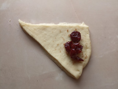 Для вкусной выпечки к чаю выбрала рецепт булочки рогалики из дрожжевого теста с яблоками. Тесто замешивала, не отступая от рецепта автора. Получилось оно мягким, удобным в работе и очень вкусным в готовом виде. Рогалики нежные, сдобные. В этот раз вместо яблочной начинки использовала вишню без косточек из варенья. Чтобы начинка не растекалась при выпечке, добавила к ней немного картофельного крахмала. Спасибо за рецепт, Юлия!