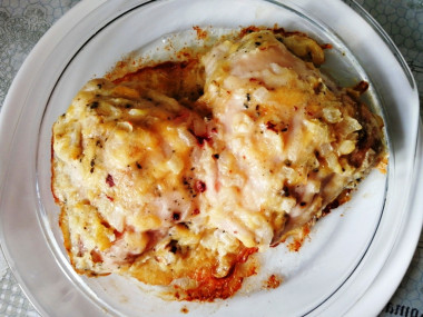 Куриное филе выложите в смазанную растительным маслом форму для запекания. Смажьте филе сметаной. Можно заменить сметану на майонез. Посыпьте измельченными грецкими орехами и тертым сыром. Поставьте в разогретую до 180°С духовку на 10-15 минут до появления румяной корочки на сыре. Подробнее о том, как правильно подобрать время и температуру запекания читайте в статье. Ссылка находится в конце рецепта.