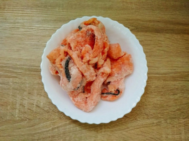 Горбушу помойте. Чешуя у горбуши мелкая, так что она легко счищается острым ножом движением от хвоста к голове. Отрежьте плавники. Это удобно сделать обычными ножницами.