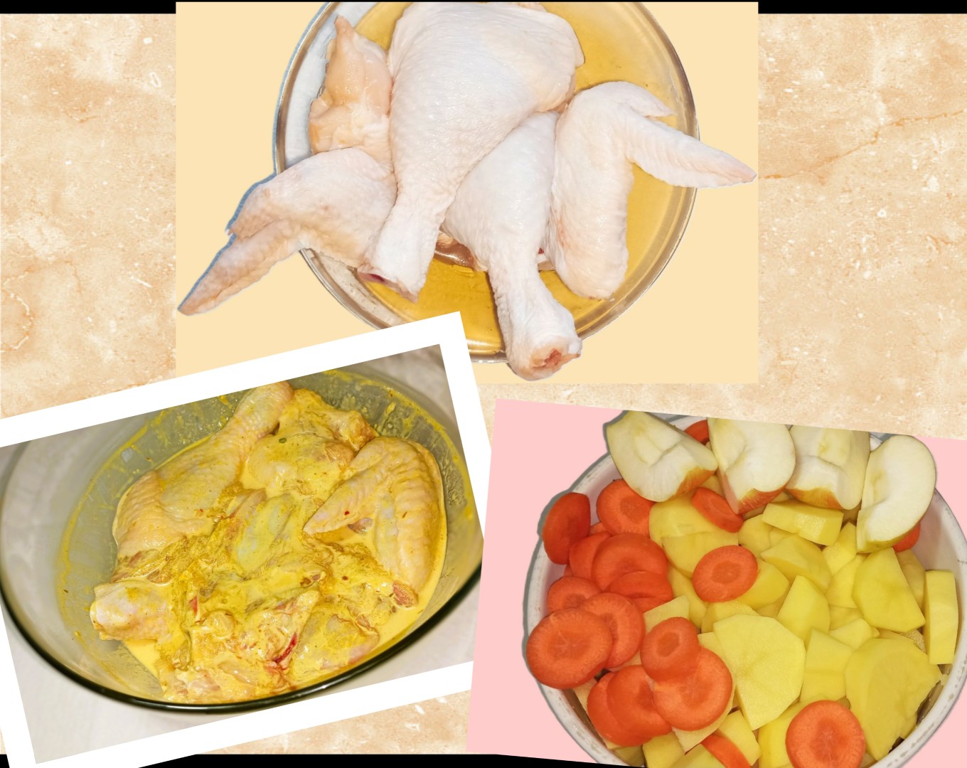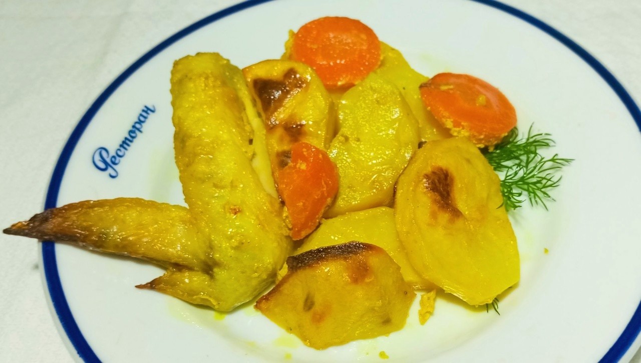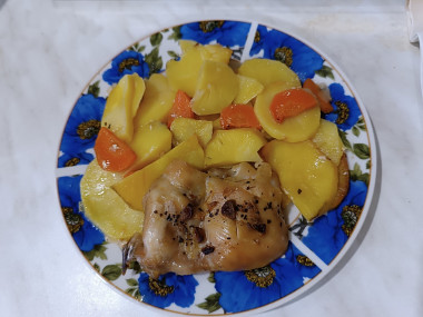 Курица с картошкой, луком и морковью в духовке под фольгой