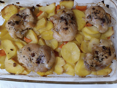 Смотри видеоКуриные бедрышки с картошкой в духовке