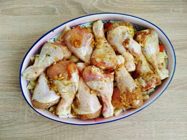 Сверху разложите куриные бедра.