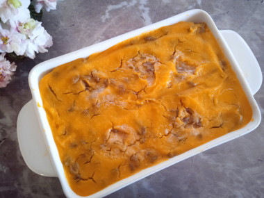 Очень интересный рецепт приготовления каши. Решила приготовить на завтрак тыквенную кашу в духовке по этому рецепту. Тыкву запекла в духовке по описанию в рецепте. Рис отварила до готовности на плите. Изюм ошпарила кипятком. Запечённую тыкву перебила блендером со сливками и сахарным песком. В небольшую форму выложила слоями тыквенное пюре, отварной рис, изюм и тыквенное пюре, сверху положила сливочное масло по рекомендации автора. Запекла кашу в духовке. Аромат обалденный. Тыквенная каша в духовке получилась потрясающе вкусной, ароматной и сытной. Великолепный рецепт! Уже хочется повторить) Всем советую попробовать! Большое спасибо автору 😊