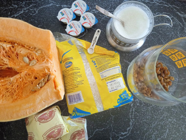 Как сделать тыквенную кашу в духовке? Подготовьте все необходимые ингредиенты. Запеките тыкву. Для этого разогрейте духовку до 220 градусов, а в это время вымойте и почистите тыкву. Вырежьте серединку, затем мякоть порежьте крупными кусочками, которые выложите в форму для запекания. На дно налейте чуть-чуть воды - так тыква получится сочнее. Запекайте тыкву при указанной температуре в течение примерно 30 минут. Она должна стать мягкой.