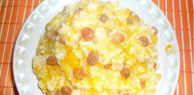 Очень полезный и питательный завтрак с изюмом и яблоками! Очень вкусно. Даже тот кто не любит тыкву, эту тыквенную кашу в духовке ест с большим удовольствием. Большое спасибо за рецепт!
