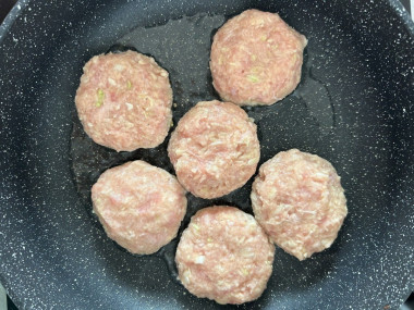 На сковороде разогрейте растительное масло. Выложите на него заготовки котлет. Обжаривайте котлеты на среднем огне с обеих сторон до румяности. Как подобрать идеальную сковороду и масло для жарки читайте в статьях на эти темы, ссылки есть в конце этого рецепта.