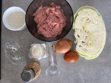 Как сделать котлеты с капустой и фаршем на сковороде? Подготовьте все необходимые ингредиенты по списку.