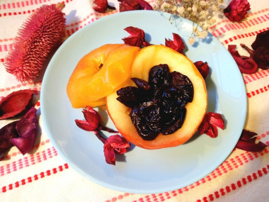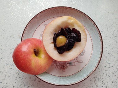 Начинить яблоки черносливом.