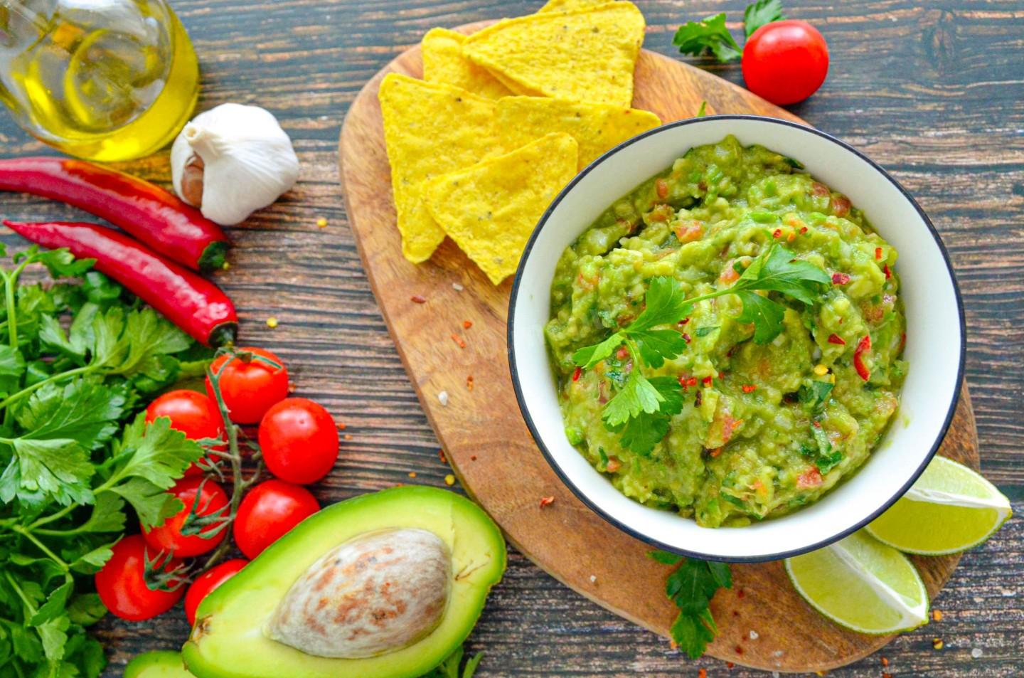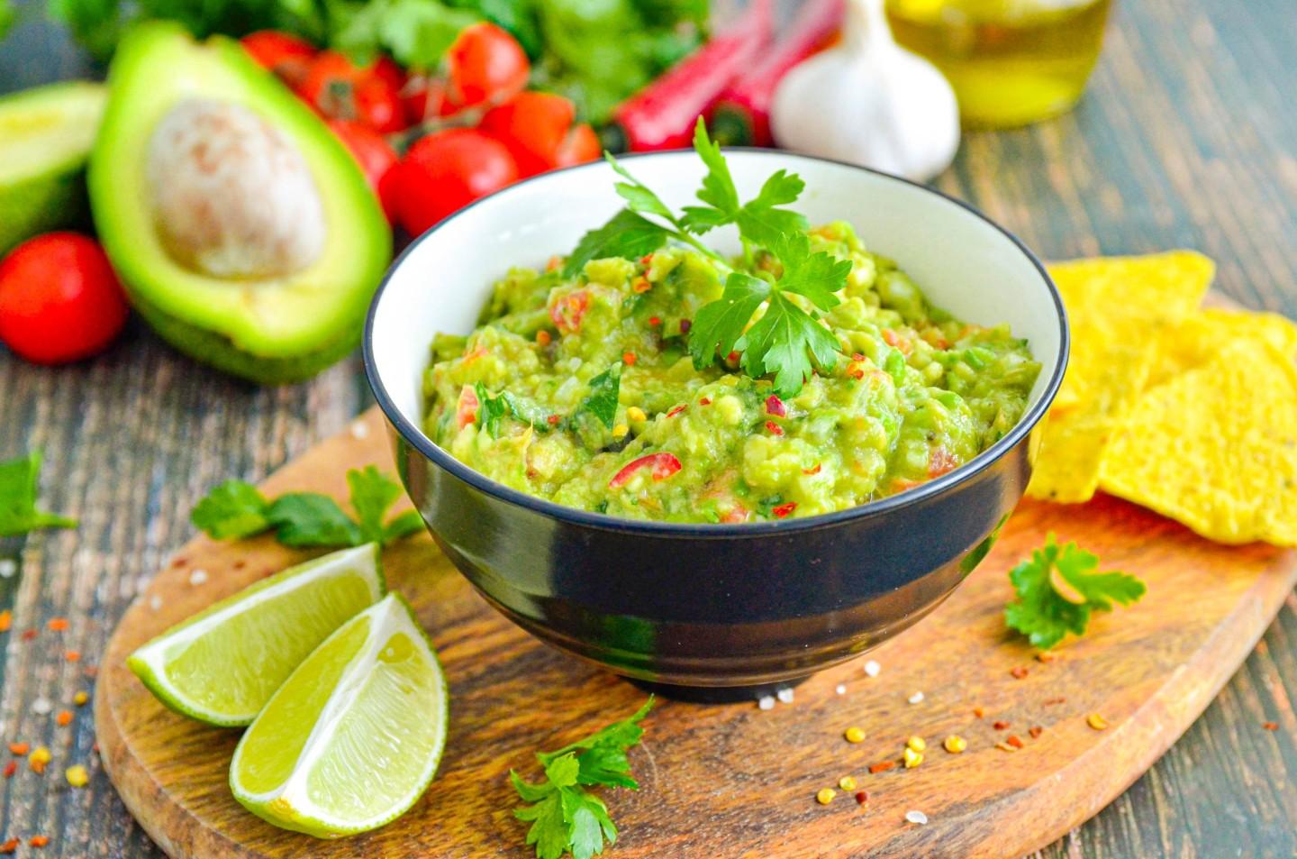 Этот классический гуакамоле — настоящий суперфуд. Авокадо, основа соуса, богат полезными мононенасыщенными жирами, калием и клетчаткой, что полезно для сердца и пищеварения. Лайм и помидоры дают заряд витамина C, а острый перец ускоряет метаболизм. Это вкусный способ добавить в рацион питательные вещества.