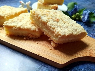 Нарежьте пирог "Посыпушка" с творогом на порционные кусочки и подавайте к столу. Приятного аппетита!