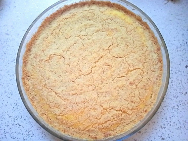 Сверху равномерно посыпьте начинку оставшейся песочной крошкой.