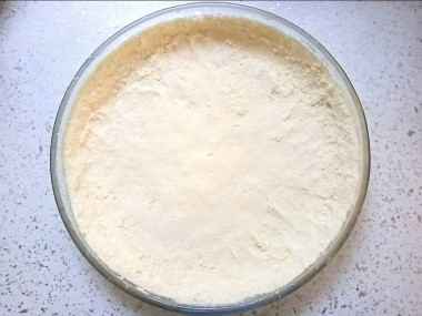 Перетрите руками холодное масло с мучной смесью. Делайте это быстро, чтобы масло не растаяло от тепла рук. Уберите песочную крошку в холодильник.