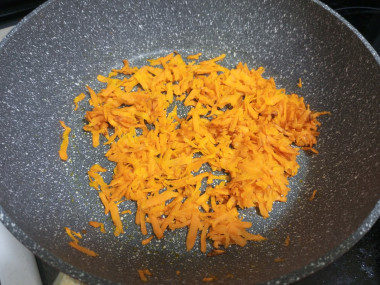 4. Морковь обжарить в той же сковороде, где жарилась курица, в течение 3‒5 минут.