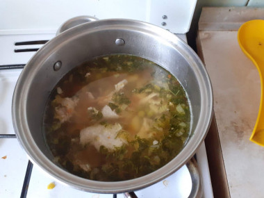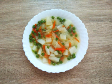 5. Выложить в суп зеленый горошек. Варить около 10 минут.