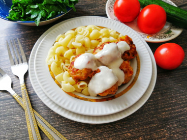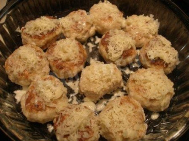 Сформировав небольшие фрикадельки, обжарила их на растительном и сливочном масле. Панировать фрикадельки не стала. Когда они подрумянились, отправила в духовку на 15 минут (меньше, чем в рецепте). Температуру сделала 220° (температура высокая, но моя духовка готовит при такой температуре лучше).