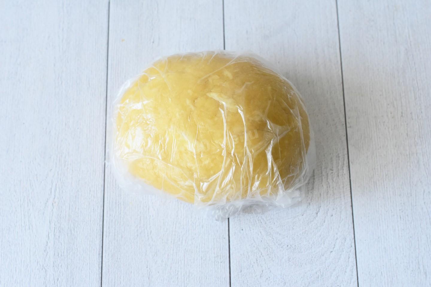 Готовое тесто соберите в комок, положите в полиэтиленовый пакет и уберите на 40 минут в холодильник.