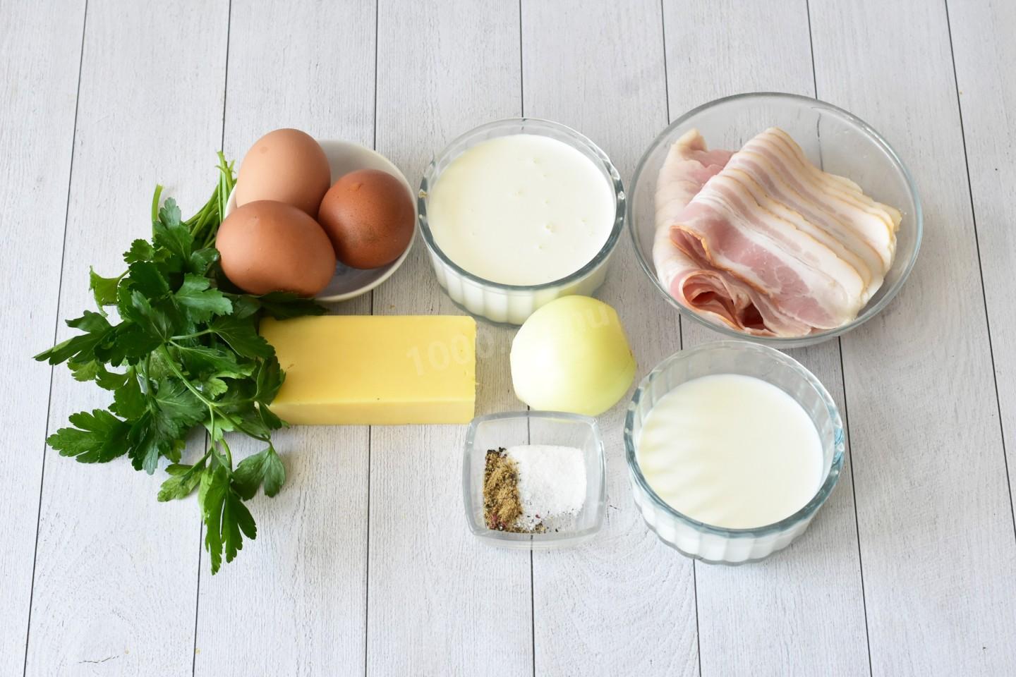 Бекон можете брать сырокопченый или варено-копченый. Третье яйцо можете заменить на белок, оставшийся от приготовления теста. Для этого пирога нужен сыр Грюер, но можете заменить его на голландский или бюджетные другие сыры по вашему вкусу.