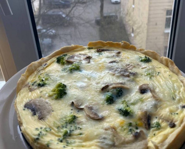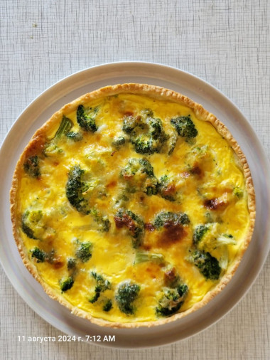 Киш с брокколи понравился! Хороший подробный рецепт. Тесто очень мягкое получилось, но работать с ним было удобно, отличный совет по формированию бортика вилкой. У меня время выпечки заняло 50 минут.