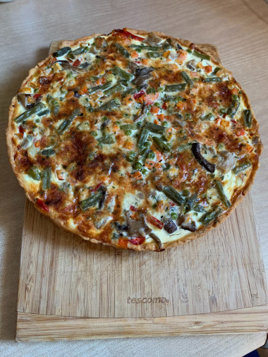 Пирог бомбический и очень прост, буквально за 10 минут можно отправить в духовку! Спасибо за рецепт! Добавила много овощей и грибов, получилось вкусно )