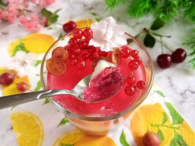 Проверяем, застыл ли второй слой. И разливаем ягодную смесь. Ставим емкости в холодильник на пару часов. После застывания третьего слоя украшаем желе и угощаем близких и себя любимых. Украсить можно тертым шоколадом, взбитыми сливками, ягодами. Приятного аппетита!