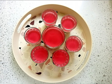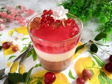 Рецепт и результат нам очень понравились, готовятся слои моментально, единственное, очень долго ждать, когда каждый слой застынет, чтобы налить следующий. В следующий раз хочу попробовать с кофе и компотом. Уж кофе – то не расслоится.