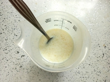 Готовим второй слой. Я его сделала молочным. 5 грамм желатина залила молоком (200 мл) и оставила набухать на 15 минут.