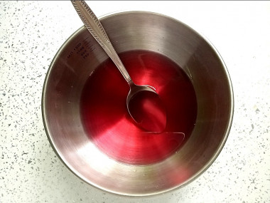 Третий слой я решила сделать ягодным. Из замороженных ягод сварила компот с добавлением 2 ст. ложек сахара. Остудила его. Затем добавила 5 гр. желатина и оставила на 15 минут. После того как желатин набух, нагрела смесь на медленном огне до полного растворения желатина.