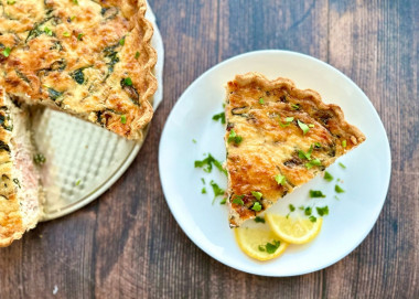 Подаем восхитительный киш лорен теплым, украсив оставленной для этих целей свежей зеленью, и наслаждаемся!