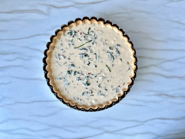 Ставим киш лорен в духовку на 35 минут, начинка должна застыть. После пирог извлекаем из духовки, даем постоять в форме 10 минут.