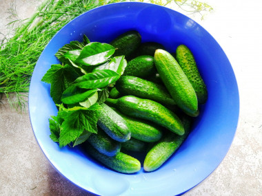 Из специй взяла укроп, лист смородины и вишни. Хрена у меня под рукой не оказалось.