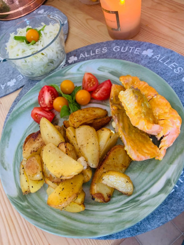 Я люблю запекать лосось или любую другую красную рыбу в сливочном соусе. Смотрите рецепт