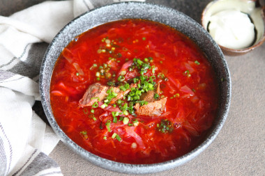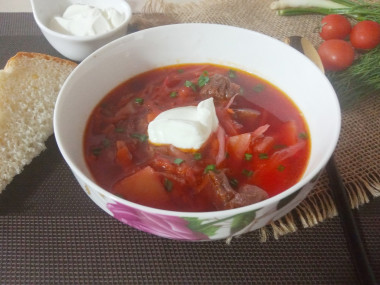 Готовый борщ подавайте украсив зеленью и добавьте ложечку сметаны. Приятного аппетита!
