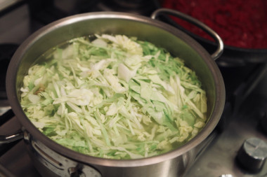 Как сварить борщ со свежей капустой, свеклой и мясом? Подготовьте для этого необходимые ингредиенты. Капусту берите свежую. Овощи хорошо помойте от загрязнений и очистите от кожуры.