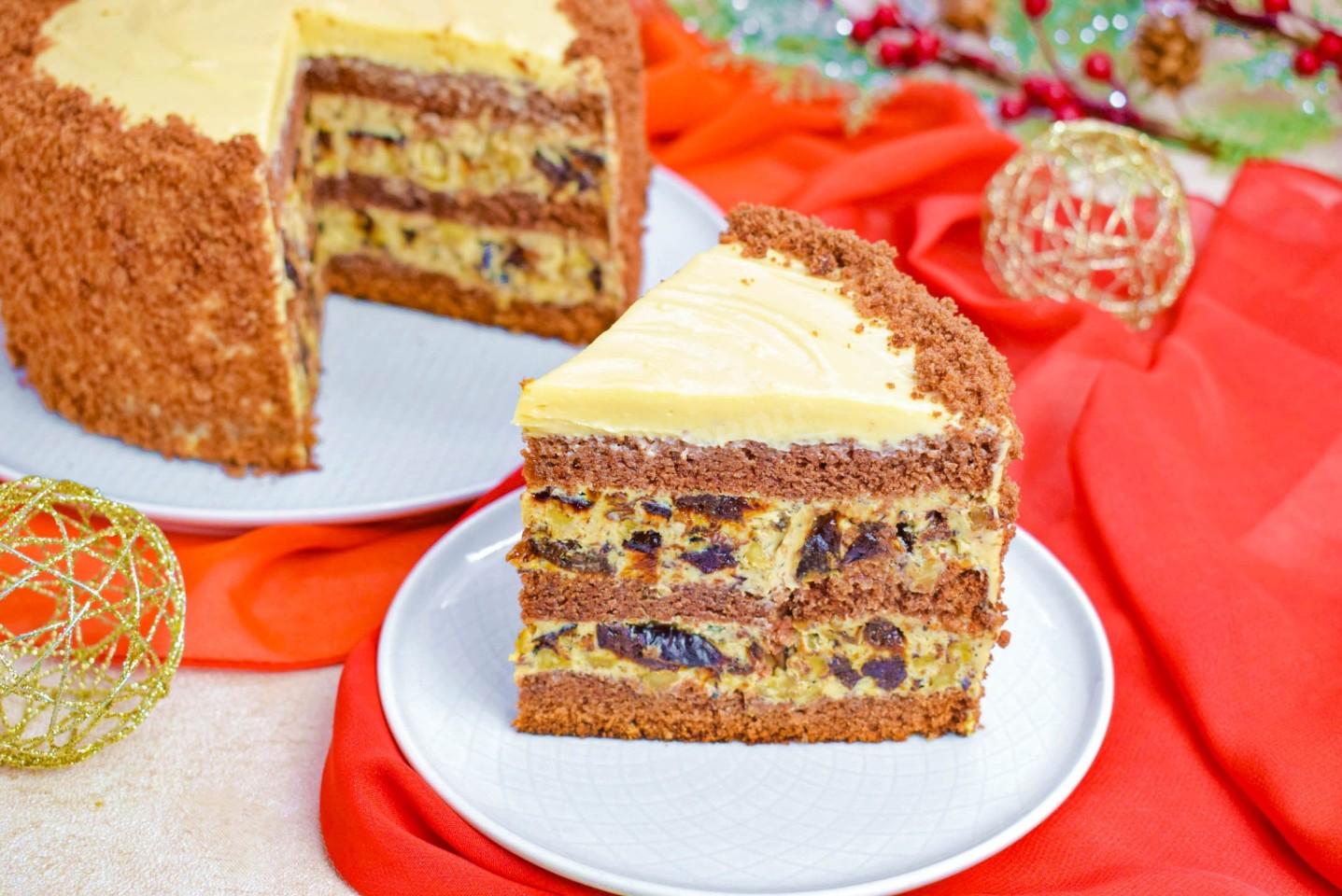 Этот торт с черносливом и грецким орехом – не просто десерт. Чернослив – источник пищевых волокон и калия, грецкие орехи богаты омега-3 и белком. Использование творожного сыра в креме добавляет белковую составляющую и делает вкус менее сладким, а бисквит на молоке получается особенно мягким и долго не черствеет.