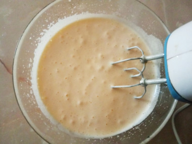 В миске взбейте яйца с 1 стаканом сахара на высокой скорости миксера. Добавьте разрыхлитель, соль. О всех нюансах работы с разрыхлителем читайте в отдельной статье, ссылка в конце рецепта.